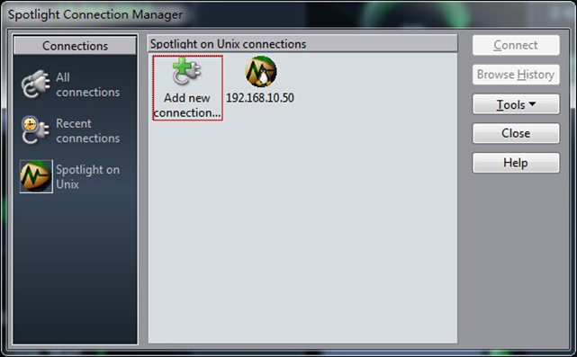 进入Spotlight界面,进入File菜单点击Connect,进入如下界面:
