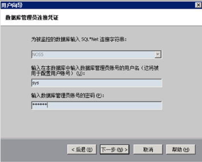 如果需要同步监控操作系统,则需要录入操作系统的用户名和密码;选择数据库客户端tnsnames.ora中配置的数据库;