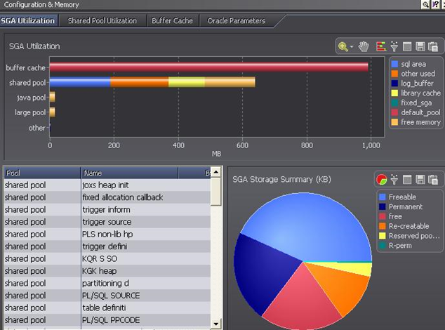 4. SGA面板:显示SGA中各组件的内存使用情况