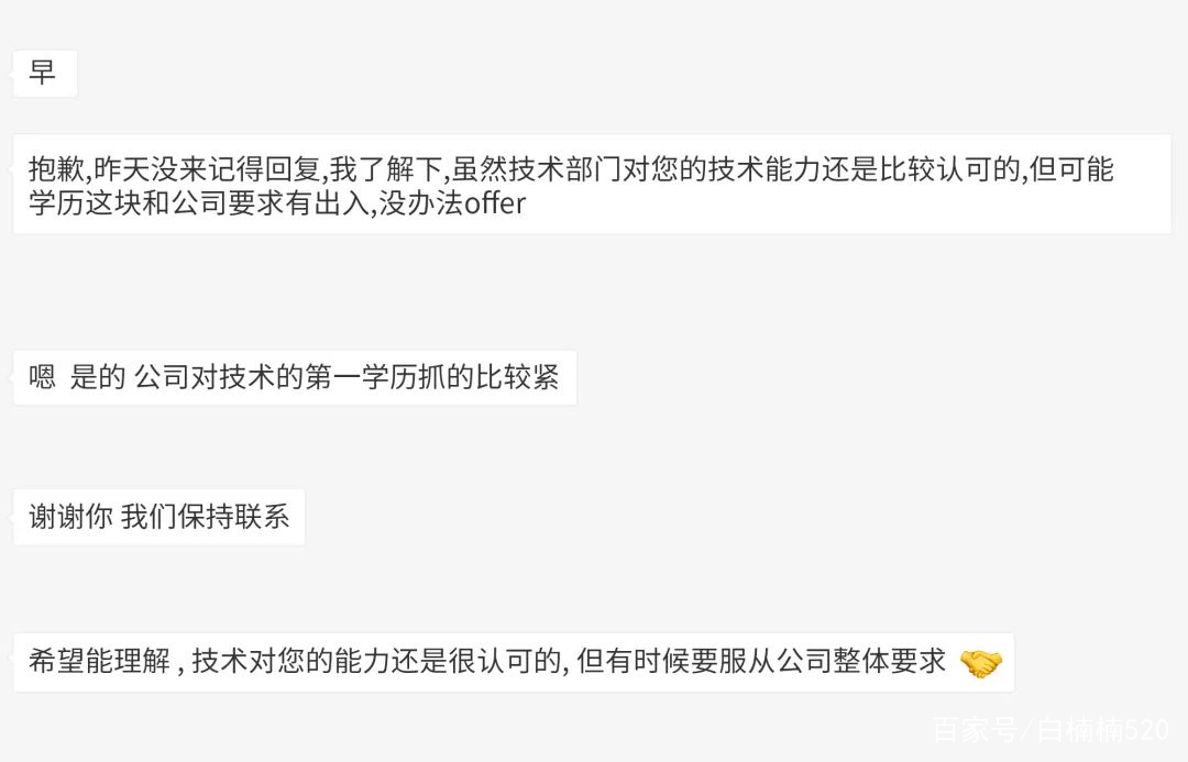 第二天就得到回复:技术过关,学历不达标,不能发OFFER。