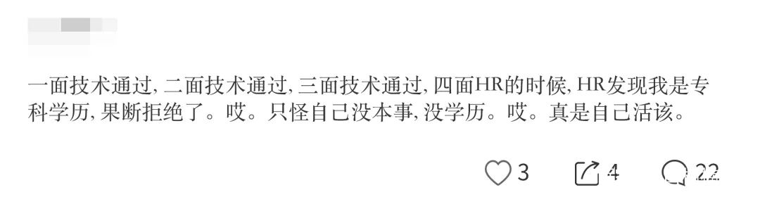 "做技术学历不重要"、“学历无用论”、“学历不等于能力”。这些鄙视学历的论调在此刻被现实反打了一记响亮的耳光。