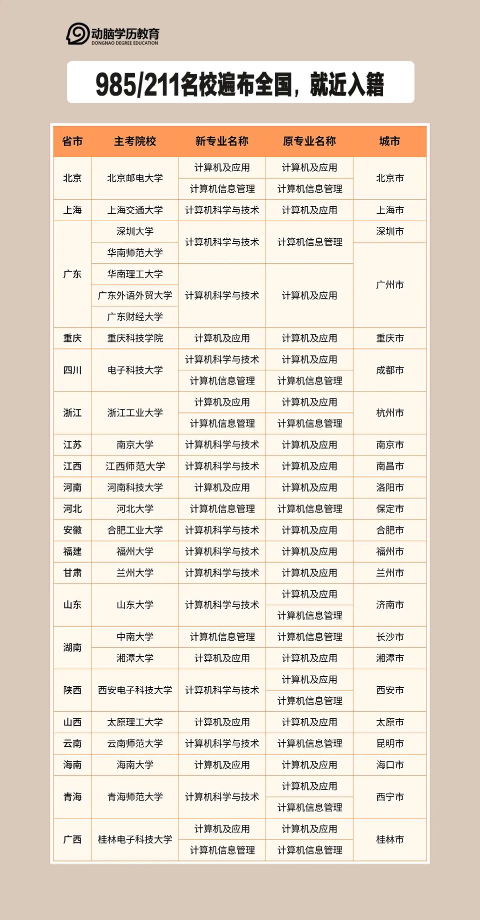 动脑学历教育提供了全国大部分地区计算机专业相关院校可供报考,多数为985/211,报考条件简单,并提供全面的报考支持。