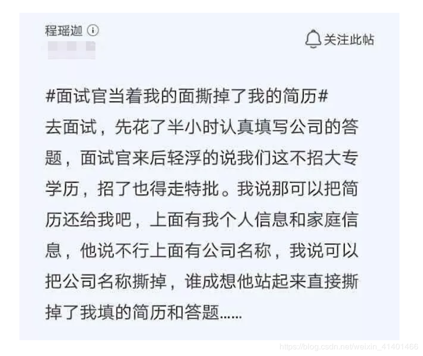 转折却来自第四面,当HR发现了他的学历只是个专科时,当即表示需要跟面试官再沟通一下。