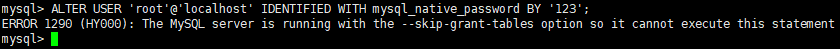 如果输入命令后出现如上图所示的错误,这是因为MySQL 8.0版本以后的授权方式与以前版本的不一样,不能授权给自己导致的,那么就执行如下操作: