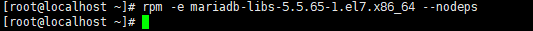 rpm -e mariadb-libs-5.5.65-1.el7.x86_64 --nodeps