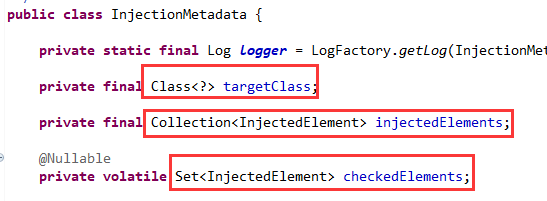 所以Spring使用InjectionMetadata类,来表示一个类的注入元数据,如下图04: