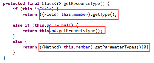如果是字段就用字段类型,如果是普通方法就用第一个参数的类型,如果是setter方法就用属性类型。