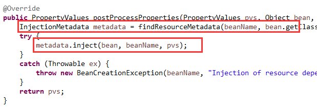 也是在postProcessProperties这个方法里完成依赖的注入,如下图12: