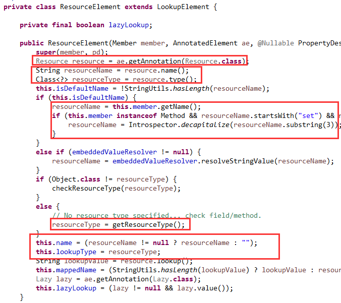 首先获取到这个注解,然后读出它的name和type属性值。如果name为空字符串,则表明没有显式指定名称,那就是用默认的名称。