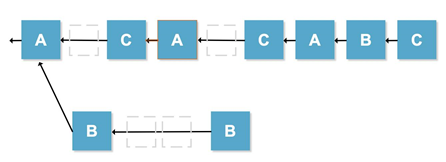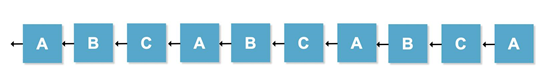 1. 正常操作:正常情况下区块生产者按顺序进行生产,间隔时间是3s。没有人错失生产,如下便是最长的链(箭头指向前一个区块)。