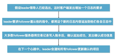 • 这样这个候选者就成为了 Leader 领导人,它可以向选民也就是 Follower 发出指令,比如进行记账。