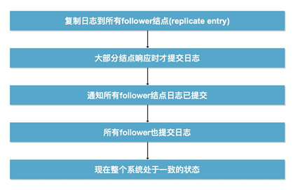 Leader 领导者接受客户端请求,并向Follower同步请求日志,当日志同步到大多数节点上后告诉Follower提交日志。所有对系统的修改都会先经过Leader,每个修改都会写一条日志 (Log Entry)。Leader 收到修改请求后的过程如下,这个过程叫做日志复制(Log Replication):