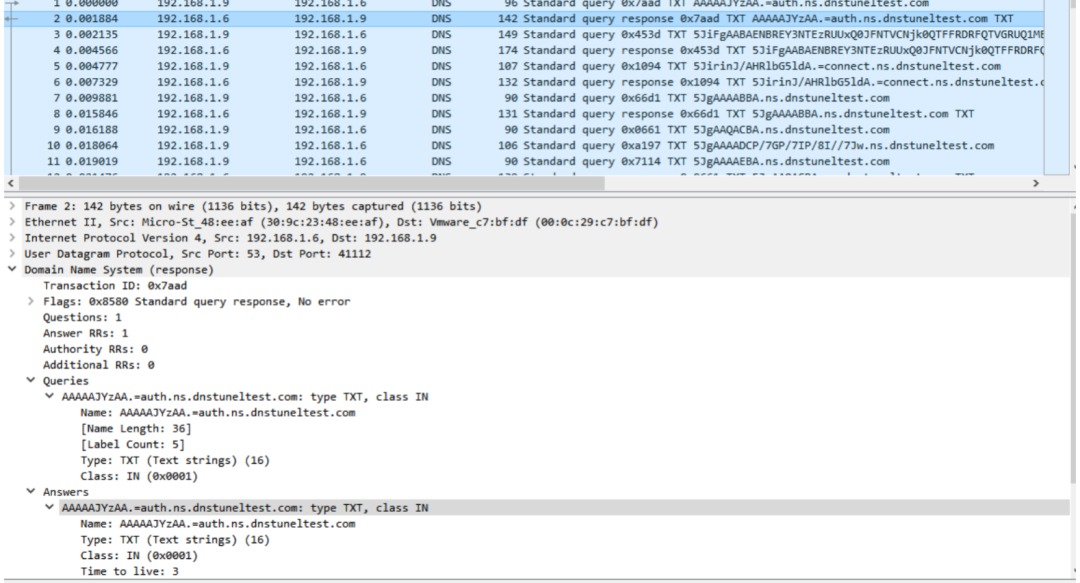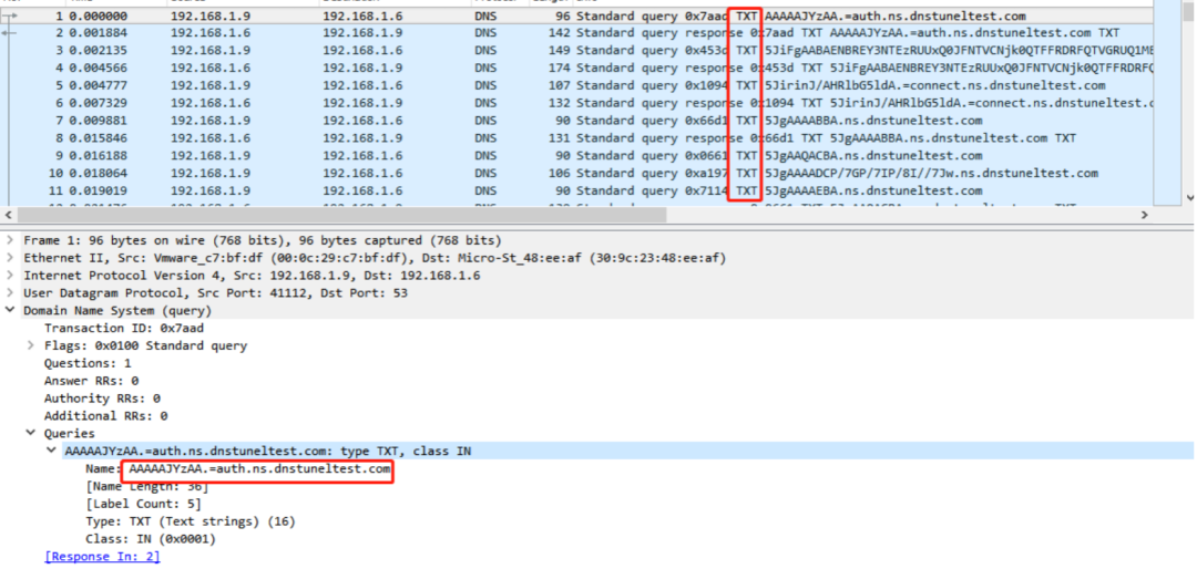 通过数据包发现使用的是TXT来传输,dns2tcp只能用两种类型:TXT和KEY,默认是TXT。