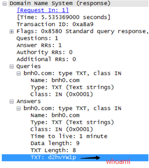 可以发现进行通信的查询类型都为A类型,但在进行命令执行时,所用的为TXT记录报文。