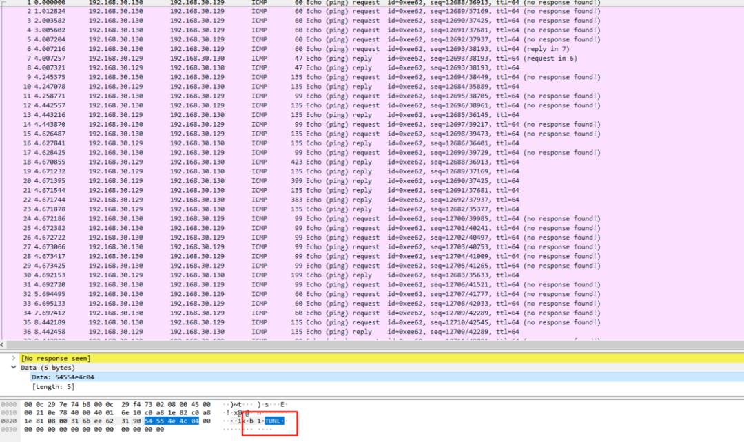一般的ICMP数据包请求包和响应包中的payload字段应该相同,可以通过对比payload字段来进行筛查。