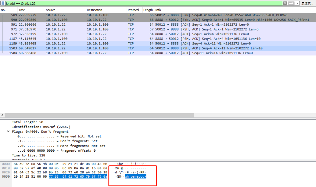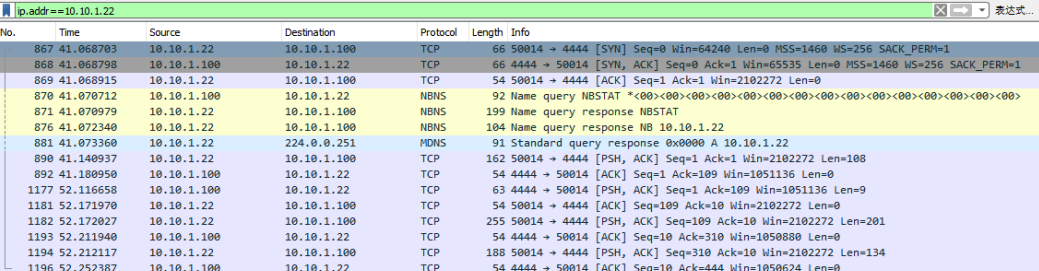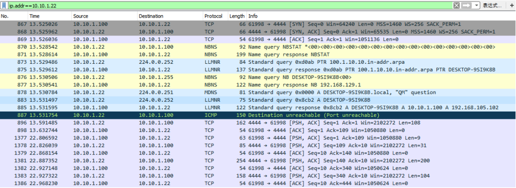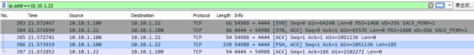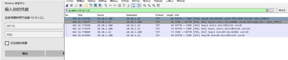 正常访问10.10.1.22(靶机)3389时产生的流量为: