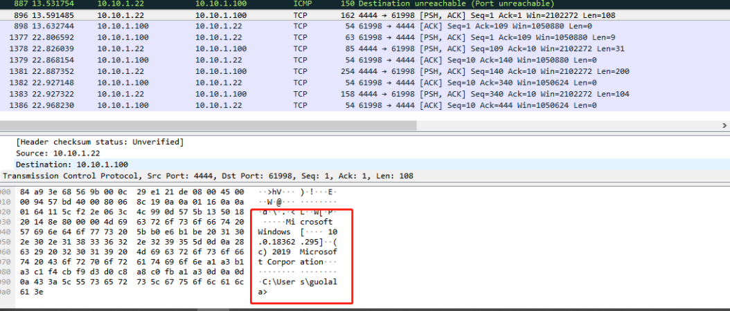 在攻击机上输入的内容也会通过4444端口传递给靶机,然后靶机再对返回信息进行回传。