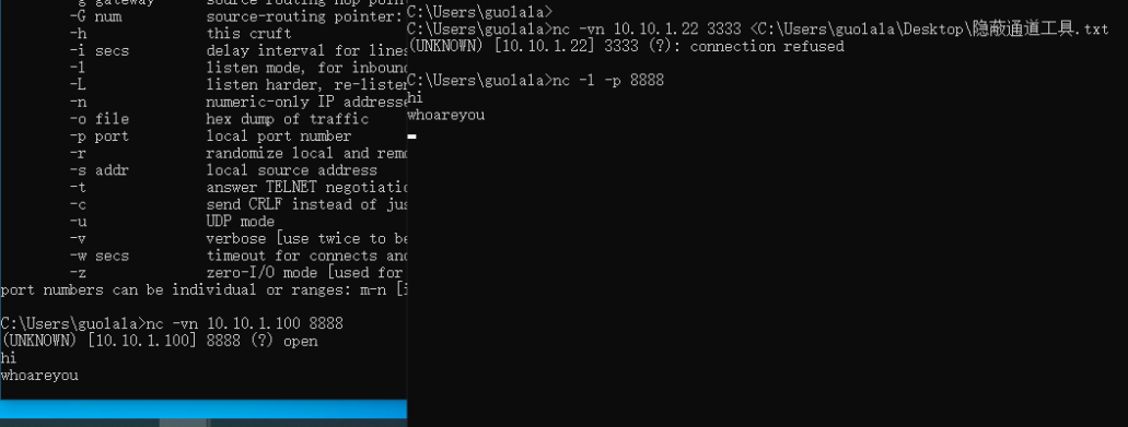 攻击机:nc 10.10.1.22 4444 <C:\Users\guolala\Desktop\net.txt