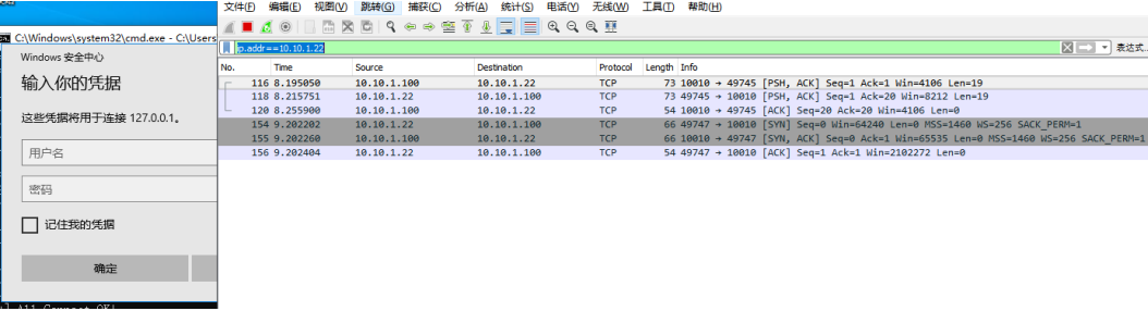 攻击机10.10.1.100通过127.0.0.1:12345端口对10.10.1.22(靶机)的3389端口进行访问。