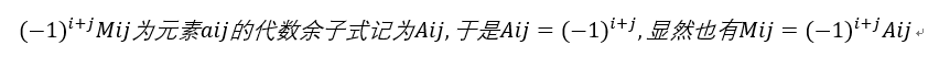 在行列式中,去掉元素aij所在地i行,第j列元素,由剩余的元素按照原来的位置与顺序组成的n-1阶行列式称为元素aij的余子式记为Mij