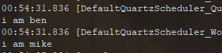 请注意上边的 Details 的 Identity ,设置为 group0.detail,同时我们创建了两个 Trigger,第二个 trigger 在创建的时候通过指定 Identity 绑定到了目标 Job,接着提交这个 Job,与两个 Trigger ,可以看到两个触发器同时出发了 Job 的 execute 方法