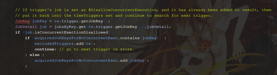 根据 Quartz 的设计,一个 Job 可以绑定多个 Trigger,必然会遇到并发的问题。