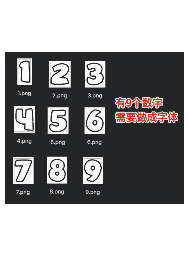 游戏当中不可避免的会用到一些卡通点的字体,比如数字由0到9组成,是我们设计师独出心裁设计的,需要应用到游戏当中。应该会有部分的前端像我一样是做web开发的,以前没有接触过游戏开发,那要实现这个需求就一脸懵逼,总不能让我用一个个sprite去代替吧。其实还真的是,位图字体的做法就是将会使用到的每个文字对应的字体做成位图,生成文字内容和位图的映射,游戏中动态的调用显示位图。这样即在游戏中呈现了漂亮的字体,又节省了资源。位图字体是由一张png的图片集和一个fnt配置文件组成的。其中png图片集中包括了所有会使用到的位图,fnt配置文件里描述了这些位图应该怎么从png图片集中切分出来。下面就是利用ShoeBox制作位图字体的过程