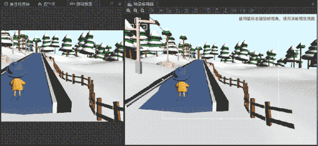 还有一个就是调整相机的角度,如果我们根据预览效果去调整相机的位置,实际操作起来有一定的麻烦,有一个隐藏的组合快捷键control+shift+f可以把我们场景编辑器的画面同步成相机的预览,它可以让我们更直观得调整相机效果