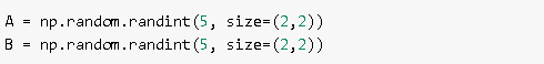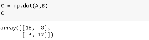 在数据科学领域,我们主要处理矩阵。矩阵是一组以结构化方式组合的行和列向量。因此,两个矩阵的相乘涉及向量的许多点积运算。我们再看一些例子就会更清楚了。我们先用NumPy创建两个2x2矩阵。