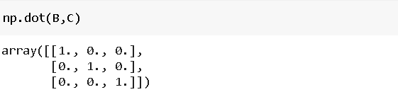 我们还提到,当一个矩阵乘以它的逆矩阵时,结果就是单位矩阵。让我们先创建一个矩阵,然后求它的逆矩阵。我们可以利用NumPy函数**linalg.inv()**求矩阵的逆。