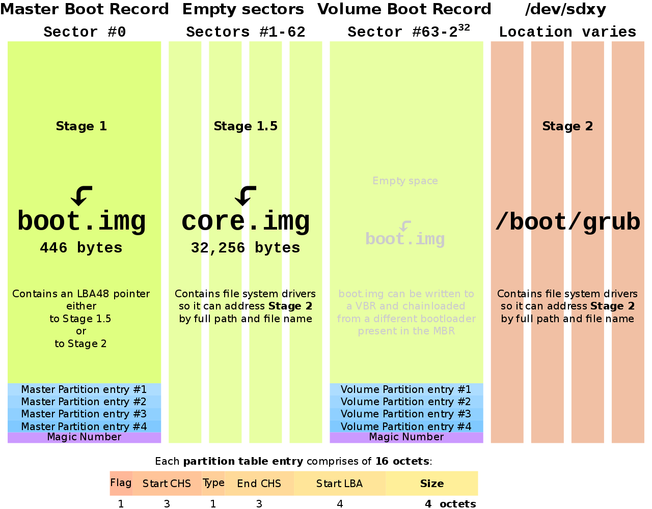 译者注:上面的图片stage 1.5的容量为32,256B,比31,744多了一个512B,不懂为什么。