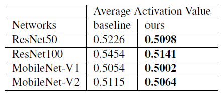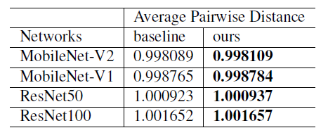 随着骨干网络性能提升,baseline和ours的平均距离逐渐增大。同时,ours的平均距离大于baseline。这说明了UIR Loss使得特征分布更稀疏。