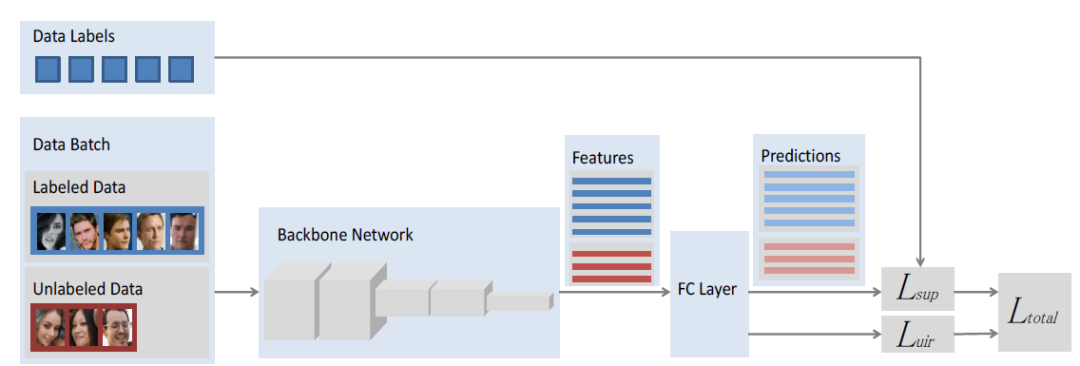 为了解决上述问题,爱奇艺技术团队提出用无标签数据优化人脸识别模型。区别于其他半监督学习方法,这个方法对无标签数据没有过多限制,只需基本保证这人不出现在有标签数据中。无标签数据的加入,可以轻易扩大训练人物数量,提升模型泛化能力。