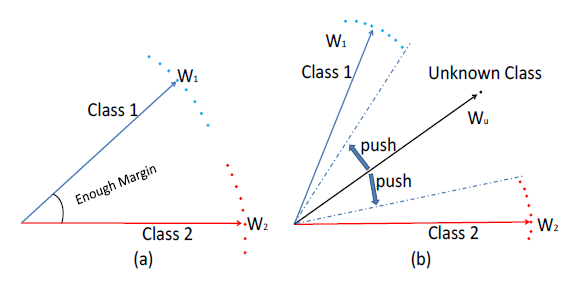 对于CNN分类模型,全连接分类层的输出经过softmax后得到p1,p2, ... , pn,表示属于各个类别的概率值。然而无标签类别并不属于任何一类,理想情况下 p1,p2, ... , pn 应该都足够小,可以通过设置阈值将其过滤,提升库外拒绝率。基于这个想法,问题可以转化成:
