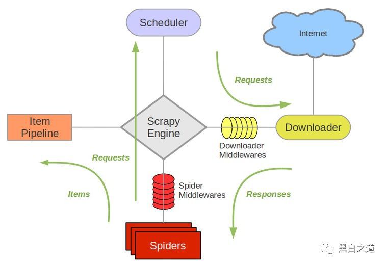Scrapy Engine:负责组件之间数据的流转,当某个动作发生时触发事件。