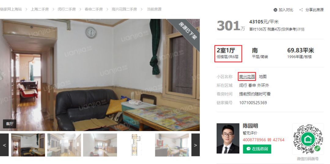 以链家的一个具体房源为例,我们的目标是提取出红框中的信息。