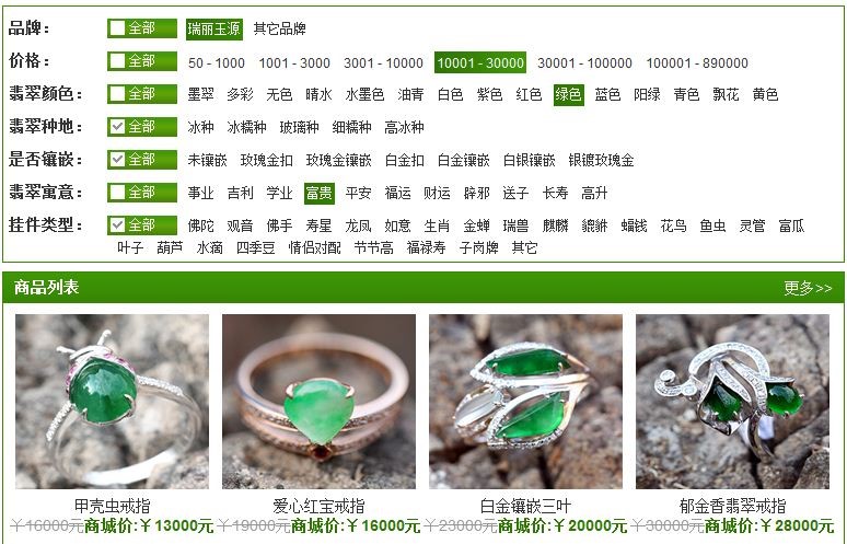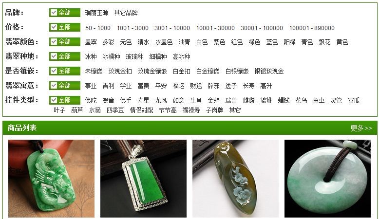 在中国云南有一个美丽的地方叫瑞丽,那里盛产玉饰,为了发展网络经济打开销路,有一家叫瑞丽玉源的公司搭建了一个电子商务网站,要求网站中可以按多种条件对商品进行搜索,可以同时按照多个条件进行过滤,包括:品牌、价格、颜色、水种、镶嵌、寓意和挂件类型。