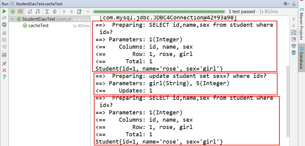 虽然查询了二次,但只向数据库发送了一次SQL请求,因为第二次是在缓存中获得的数据。