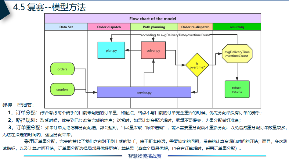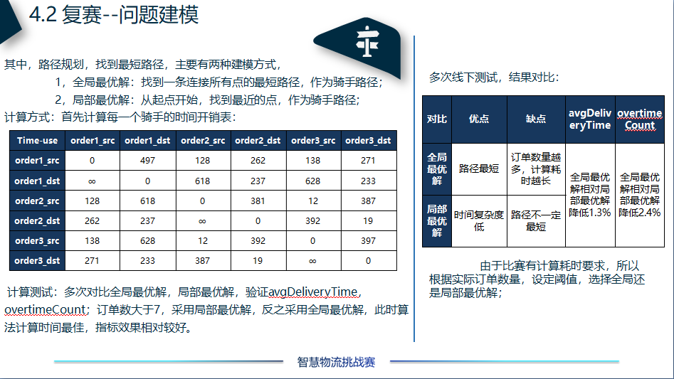复赛目标:合理安排骑手,平均配送时长尽可能短、超时运单数尽可能少;思路:优先满足尽可能多的运单准时送达;策略:先分配能准时送达的运单,再分配无法准时送达的运单。