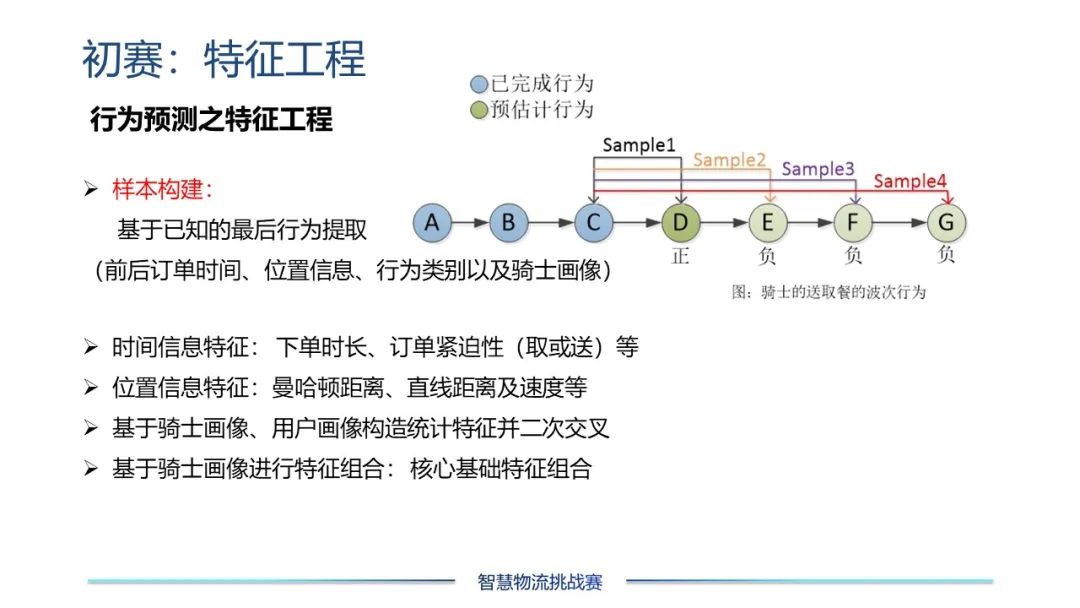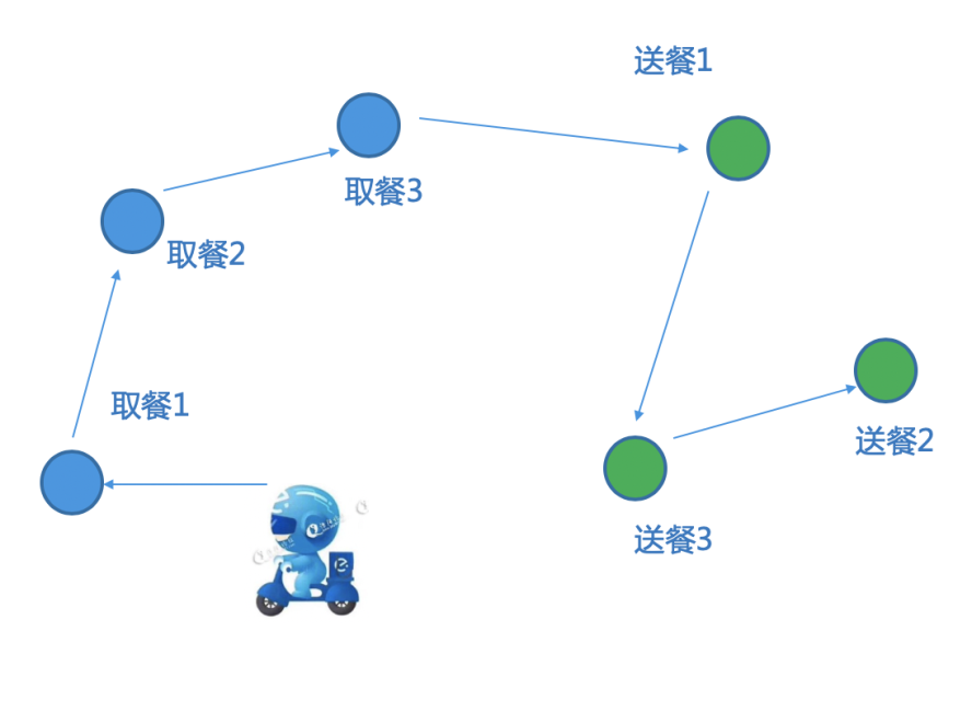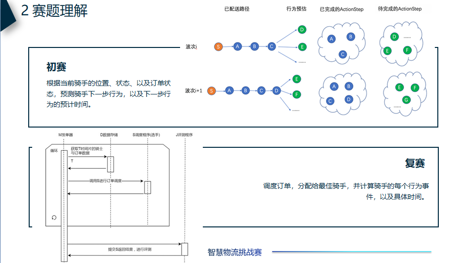 初赛骑手在面临行为决策时,存在多个待取订单和多个待送订单,我们团队将骑手行为预测问题分为两个阶段进行解决。