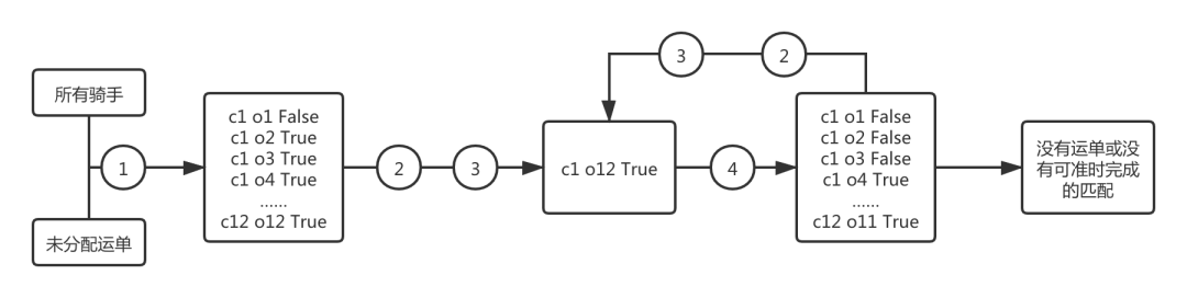 遍历所有骑手与未分配运单,通过穷举所有行动方式判断该骑手增加该运单后,能否准时送达;