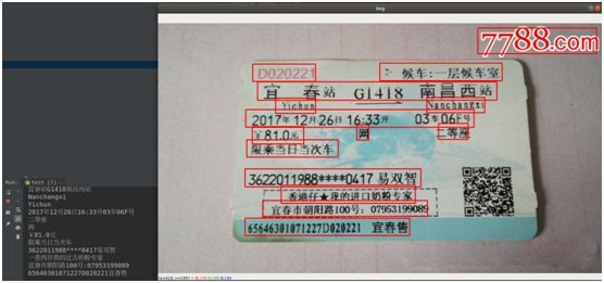 从识别效果上看还不错,接下来试一下火车票、身份证类型的识别