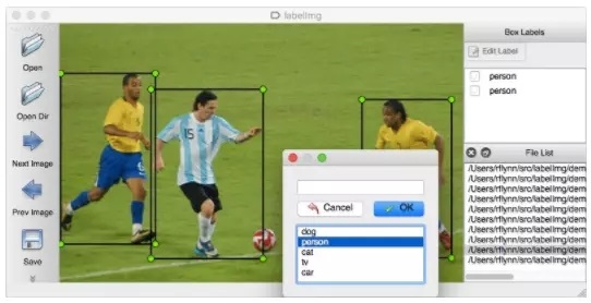 如果图片很多,一张一张去计算位置信息,然后编写xml文件,实在是太耗时耗力了。所幸,有一位大神开源了一个数据标注工具labelImg(https://github.com/tzutalin/labelImg),只要在界面上画框标注,就能自动生成VOC格式的xml文件了,非常方便,如下图所示: