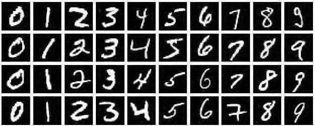 MNIST是一个经典的手写数字数据集,来自美国国家标准与技术研究所,由不同人手写的0至9的数字构成,由60000个训练样本集和10000个测试样本集构成,每个样本的尺寸为28x28,以二进制格式存储,如下图所示: