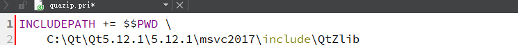 在我们打开的QuaZip的.pro工程中找到.pri文件->打开编辑这个文件:引用zlib文件 INCLUDEPATH += zlib路径