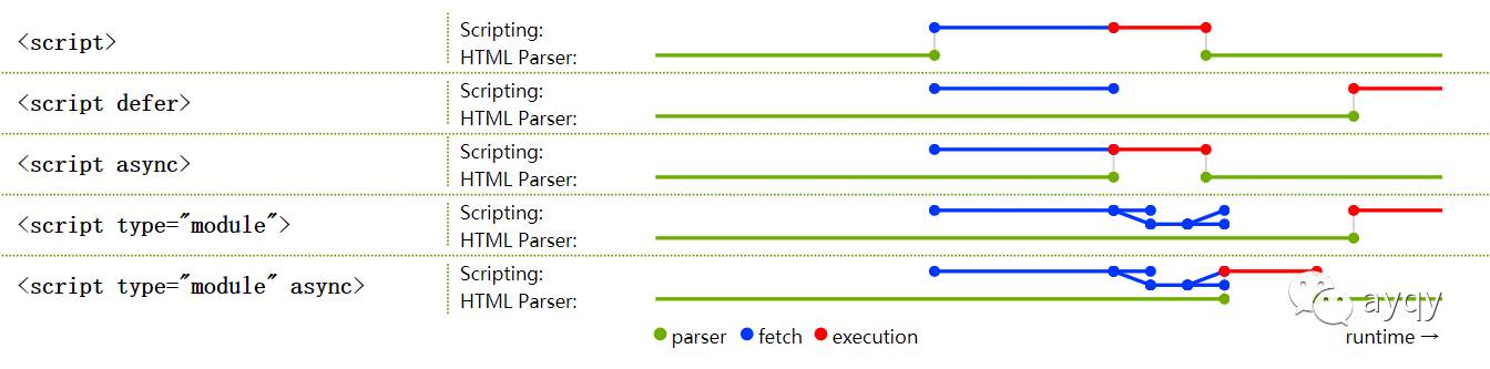 自带defer效果,与裸script默认行为(加载资源立即执行,并且阻塞HTML文档解析)不同。另外,虽然import加载同级资源是并行的,但寻找下一级依赖的过程不可避免是顺序串行的,这部分性能无法忽略,即便浏览器原生支持了ES Module,也不能肆无忌惮地import