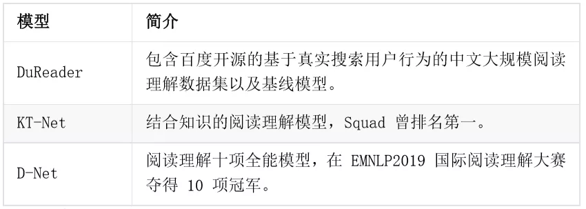 PaddleMRC (Paddle Machine Reading Comprehension),集合了百度在阅读理解领域相关的模型,工具,开源数据集等一系列工作。