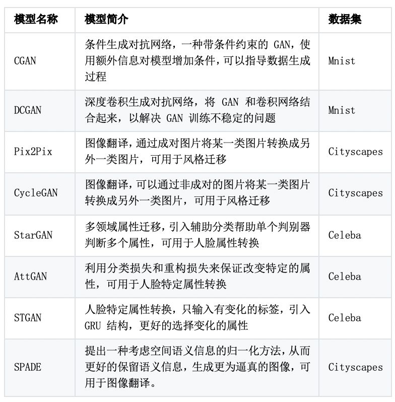 图像生成是指根据输入向量,生成目标图像。这里的输入向量可以是随机的噪声或用户指定的条件向量。具体的应用场景有:手写体生成、人脸合成、风格迁移、图像修复等。PaddleGAN 包含和图像生成相关的多个模型。